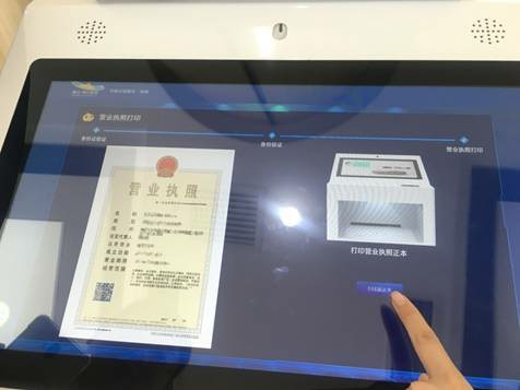 就像大伙兒在火車站取票一樣,點擊營業(yè)執(zhí)照打印后,把身份證放在識別區(qū),系統(tǒng)立刻就能識別出你旗下的企業(yè)。