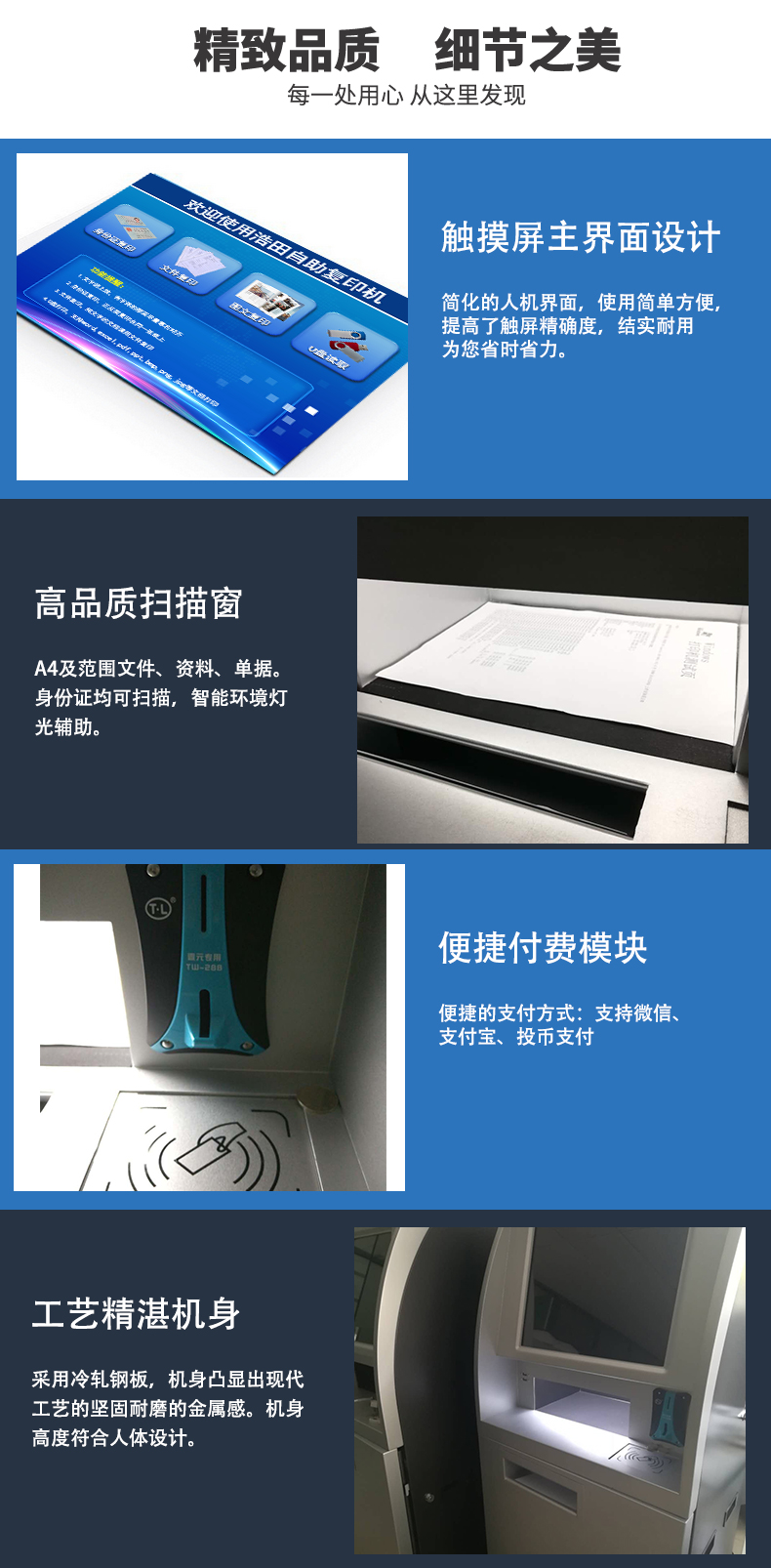 浩田自助打印機怎么使用?它真正實現了無人化管理,實使用校園卡/投幣/微信掃碼支付即可完成復印文件支付,宿舍大樓自助打印機打破了傳統復印店的壟斷,受到師生們的歡迎。