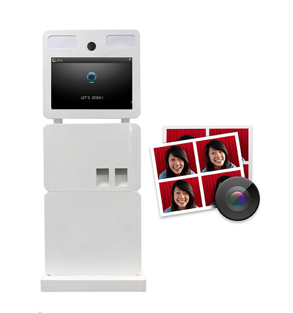 自助照相亭主體是一個機箱,上面是顯示屏,上面是照相機,連接至下方的觸控屏,既可以當(dāng)顯示屏,又可以完成照相、修圖到打印的任何過程。