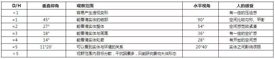 景區(qū)拍照抓拍系統(tǒng)怎么放置?首先考慮景點與游客視線的關(guān)系,這種關(guān)系取決于視線距離和物體高度之比(D/H),一般來說D/H大體在1:3之間,游客視線設(shè)計取垂直視角18°,水平視角36°。作為普通觀光時,這個角度是視覺開始渙散的界線,這種距離會使游客去注意到與周邊物體的關(guān)系。當視角為45°時,注意力會相對集中,這時候游客容易觀察到周邊景物的細部。當視角為30°時候,游客容易看到景物立面的細部。當視角為14°時,游客傾向于將景物看成突出于整體背景中的輪廓線(圖2,表1)。