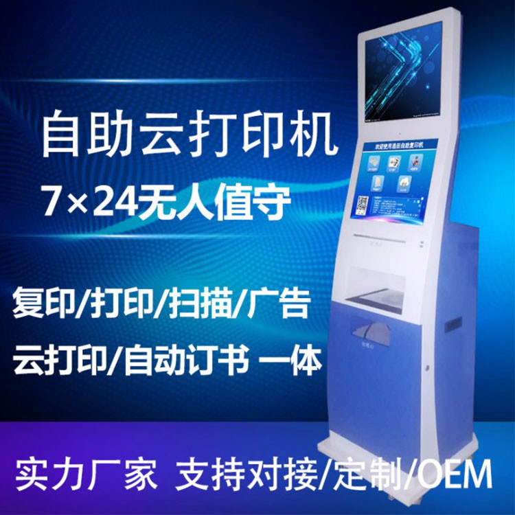 2、自助,智能自助復印打印一體機,文件掃描、復印、打印,均能自助輕松完成,支付寶、微信、投幣支付,實現真正的人工智能化無人值守的共享型復印打印終端。